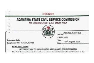 The Adamawa State Civil Service Commission has announced the results of the recruitment exercise conducted via Computer-Based Testing (CBT).