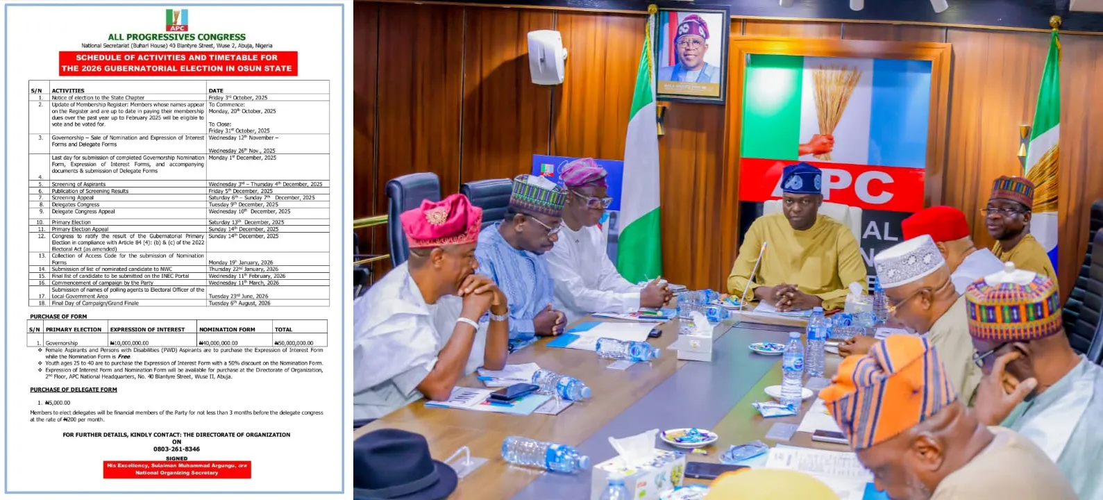 The release of the timetable and fees signals the formal kickoff of the APC’s internal political season, with intense contests expected across party structures nationwide as aspirants begin to position themselves ahead of the March 2026 convention.
