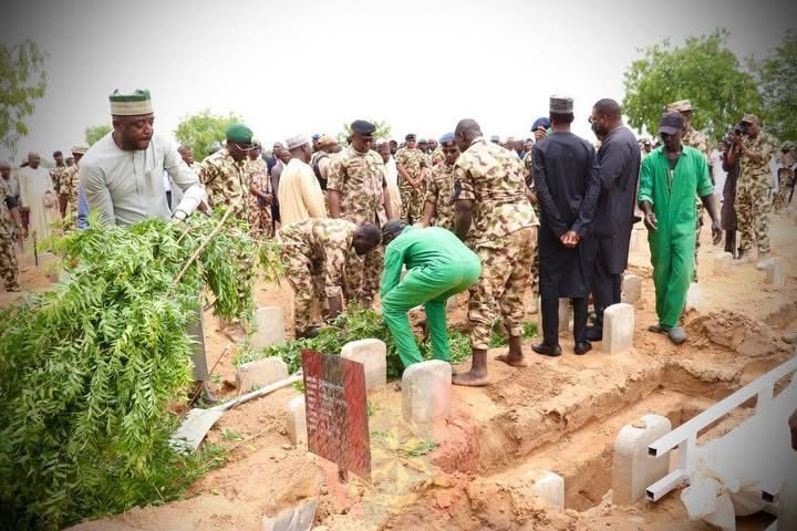 The fallen officers and troops were laid to rest at the Maimalari Cantonment Cemetery in Maiduguri, the state capital, amid full military honours.