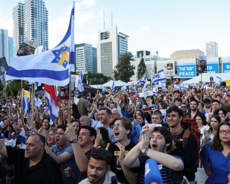 Families and friends of the hostages who gathered in a square in Tel Aviv broke into wild cheers as Israeli television channels announced that the hostages were in the hands of the Red Cross. Tens of thousands of Israelis watched the transfers at public screenings across the country.