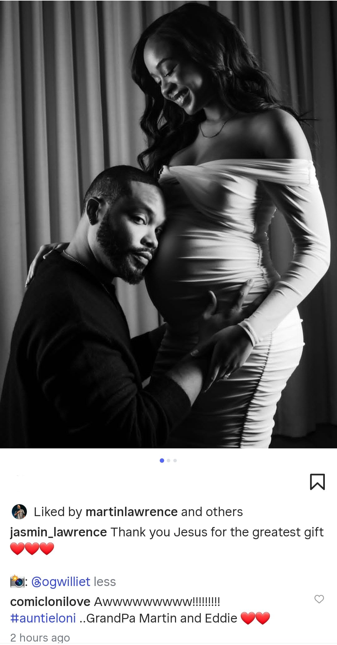 Eric Murphy, Eddie Murphy’s son, and Jasmin Lawrence, Martin Lawrence’s daughter, have revealed that they are having their first child together.