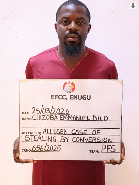 The Economic and Financial Crimes Commission (EFCC), Enugu Zonal Directorate, has arraigned a 29-year-old businessman, Chizoba Emmanuel Dilo, before the Anambra State High Court sitting in Onitsha over alleged stealing involving N64 million.