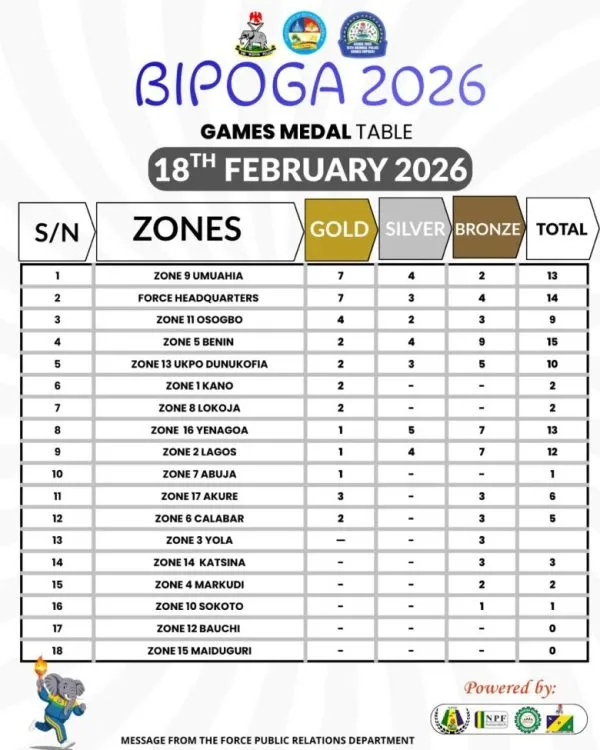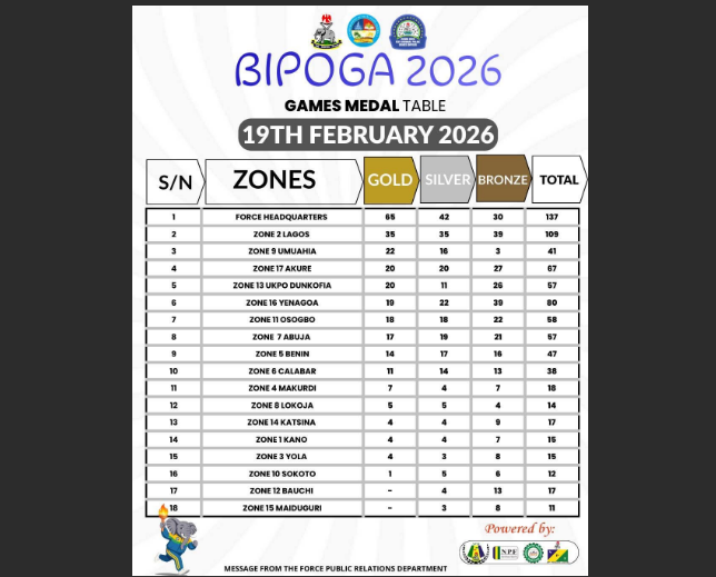 As the curtain falls on BIPOGA 2026, the medal table reflects not just sporting excellence, but the competitive spirit and unity among officers of the Nigeria Police Force across the federation.