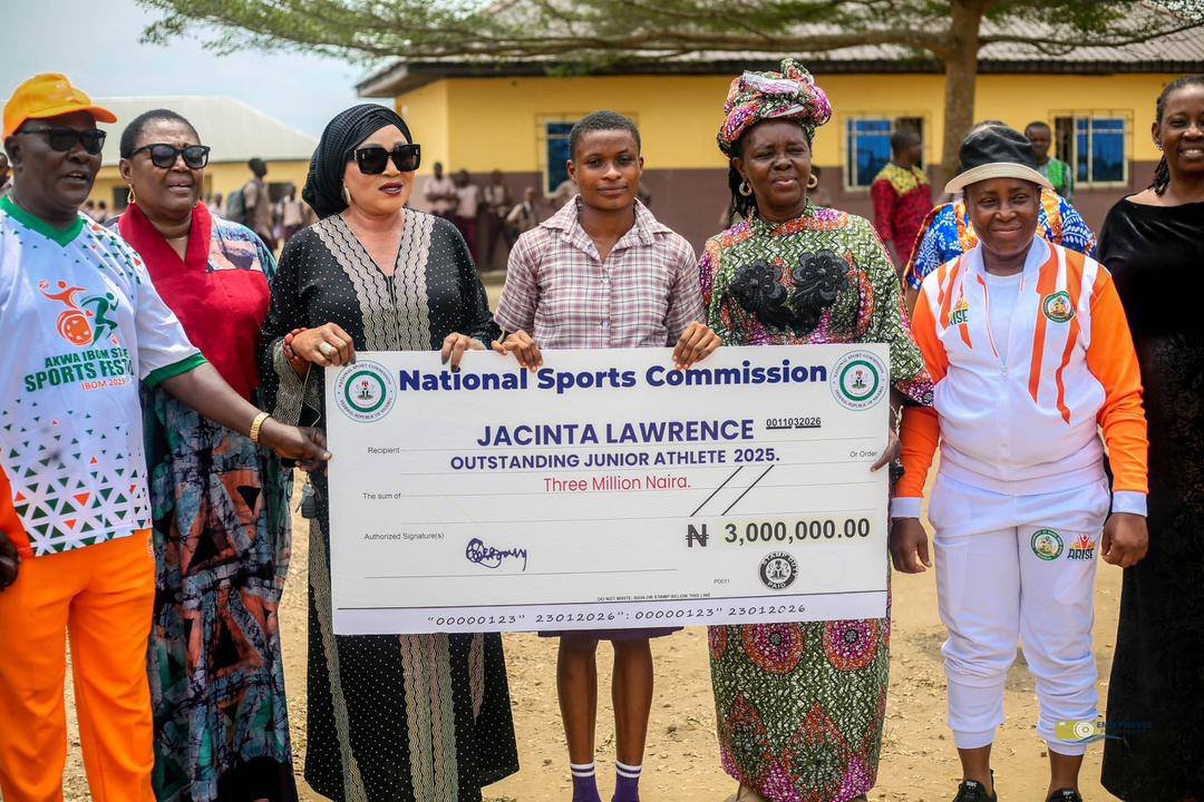 The National Sports Commission has rewarded teenage athlete Jacinta Lawrence Andrew with a cash reward of ₦3 million after naming her the Outstanding Junior Athlete of 2025, in recognition of her impressive performances on the continental athletics stage.