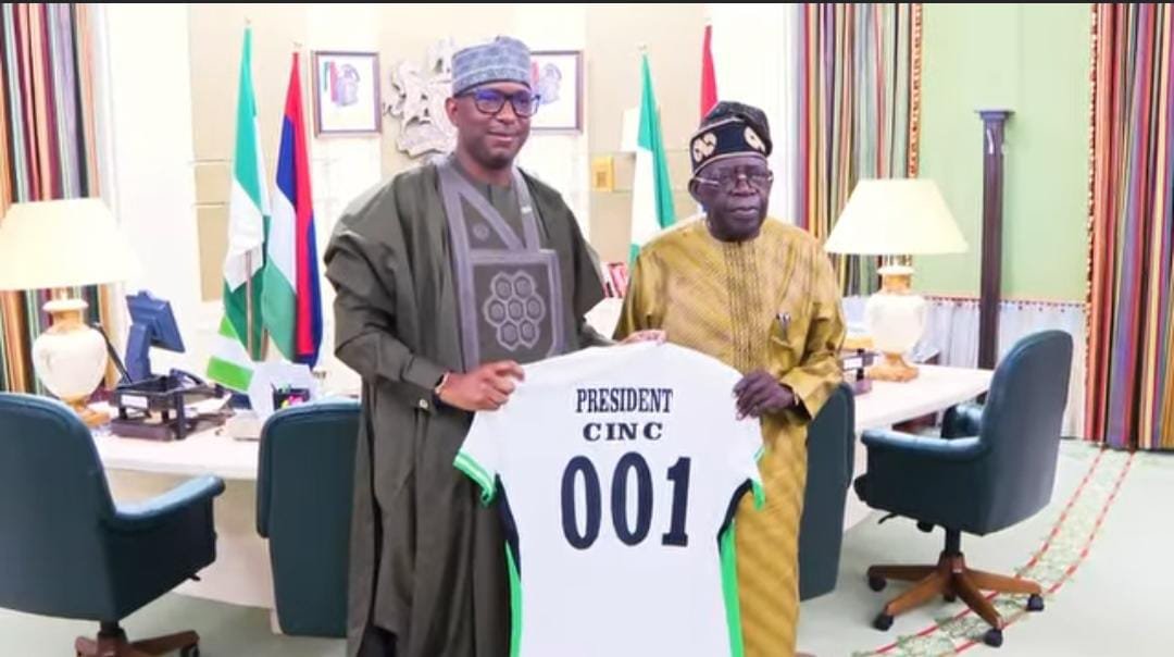 Sports administrator Shehu Dikko presented a specially customized Super Eagles jersey to President, Bola Tinubu, in a symbolic gesture highlighting the federal government’s continued support for the nation’s senior men’s football team.