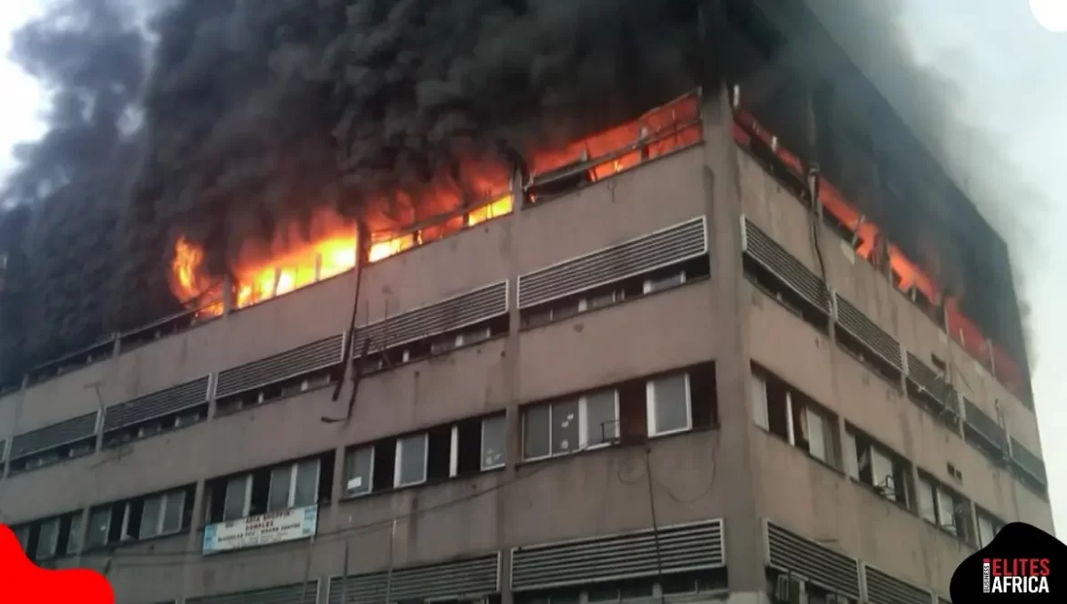 The fire, which broke out on Tuesday afternoon, left many workers trapped inside the multi-storey Afriland Building.