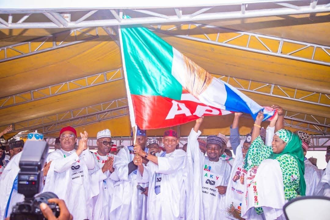 The Vice President, Kashim Shettima, on Monday officially received the Kano State Governor, Abba Kabir Yusuf, into the All Progressives Congress at the Sani Abacha Stadium, Kano.