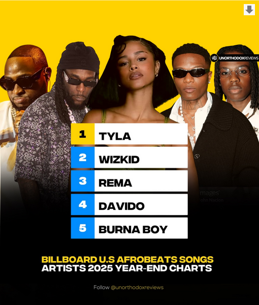 The charts, which reflect streams, sales, and airplay from late October 2024 to mid-October 2025, showcase the strong presence of Afrobeats among American audiences.