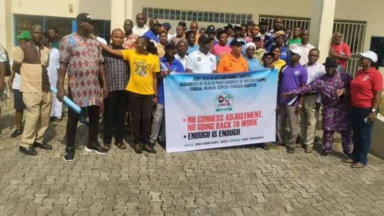 The Joint Health Sector Union (JOHESU) and Assembly of Health Professionals of Nigeria (AHPN)at the Federal Medical Center,Yenagoa have staged a protest over the non-adjustment of the Consolidated Health Salary Structure (CONHESS).